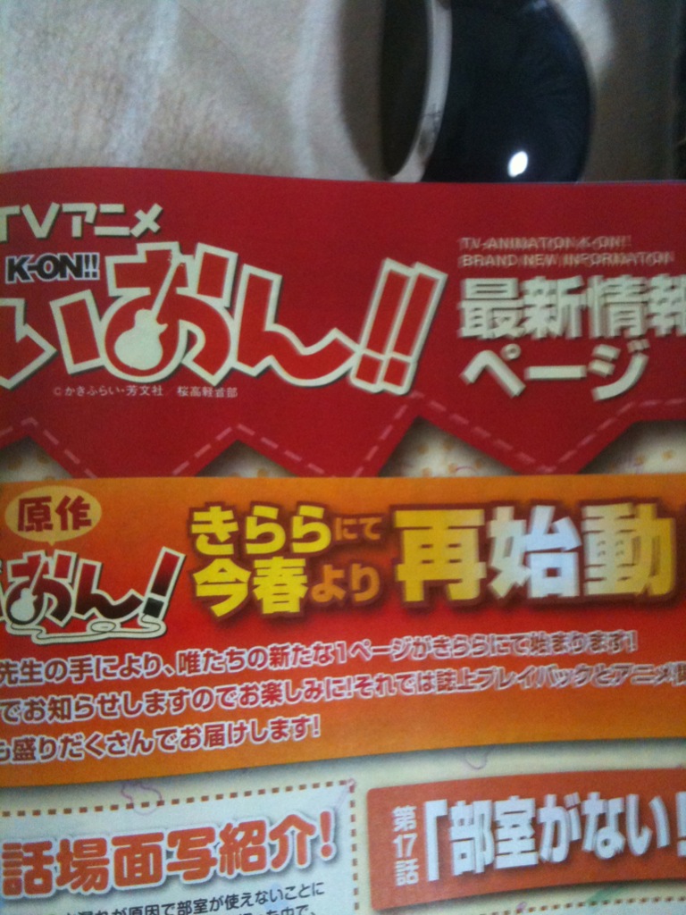 けいおんアニメの放送により爆発的ヒットを起こしたけいおんが約9か月間の眠りより覚め今春より連載再会されるそうです。