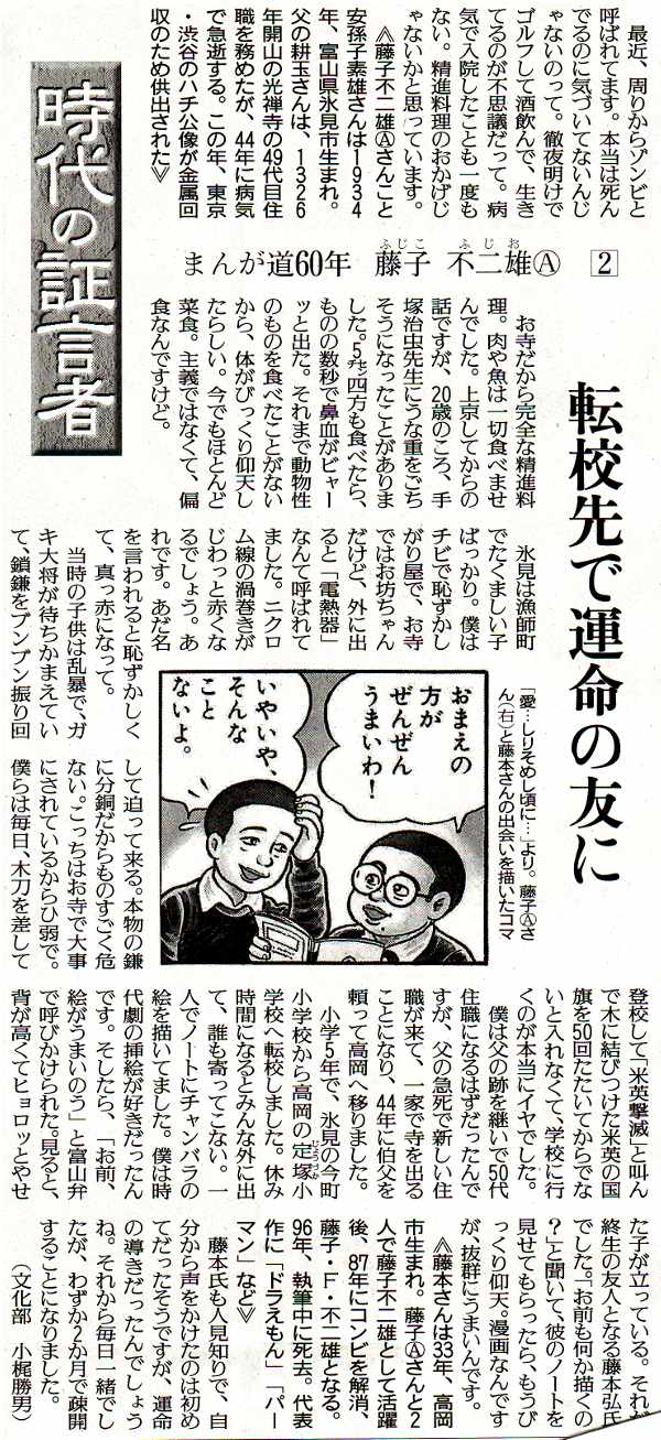 読売新聞 時代の証言者 藤子不二雄A氏が語る2