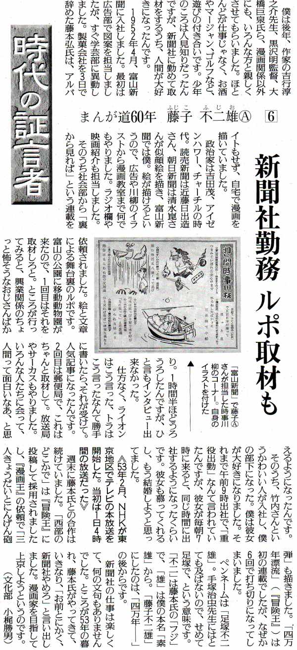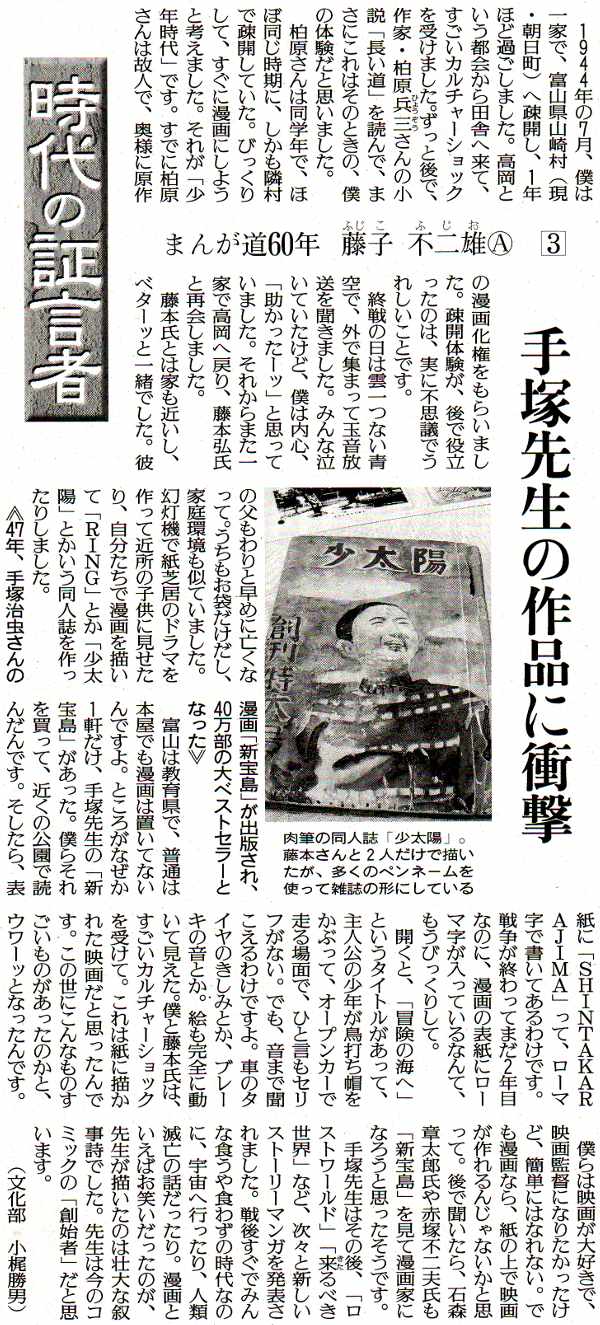 読売新聞 時代の証言者 藤子不二雄A氏が語る3