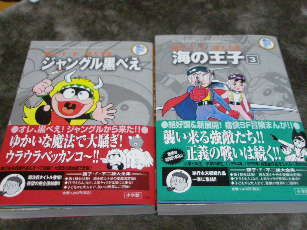 本日無事、F全集の「ジャングル黒べえ」と「海の王子3巻」を購入(うちは地方なので発売が1日遅いです)してきました。海の王子は1巻の途中で少しダウン気味で読んでません。