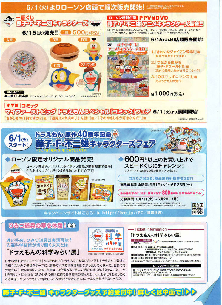 現在ローソンで藤子・F・不二雄フェアをやっています。私は偶然昨日よったのですがフェアをしているとは知らずに何も購入しませんでした。といってもなにやらチラシが目についてそれだけはもらってきました