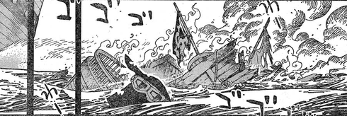 最後の注目点はサボです。 作中ではサボが死んだてきな内容ですが死体は上がっていませんのであくまでサボの生死は不明です。まだ、サボ=ロー説は生きています。私はこの残骸をひろってエース・ルフィはサボの海賊旗を知るんだと思っていましたがどうやら違うようです。