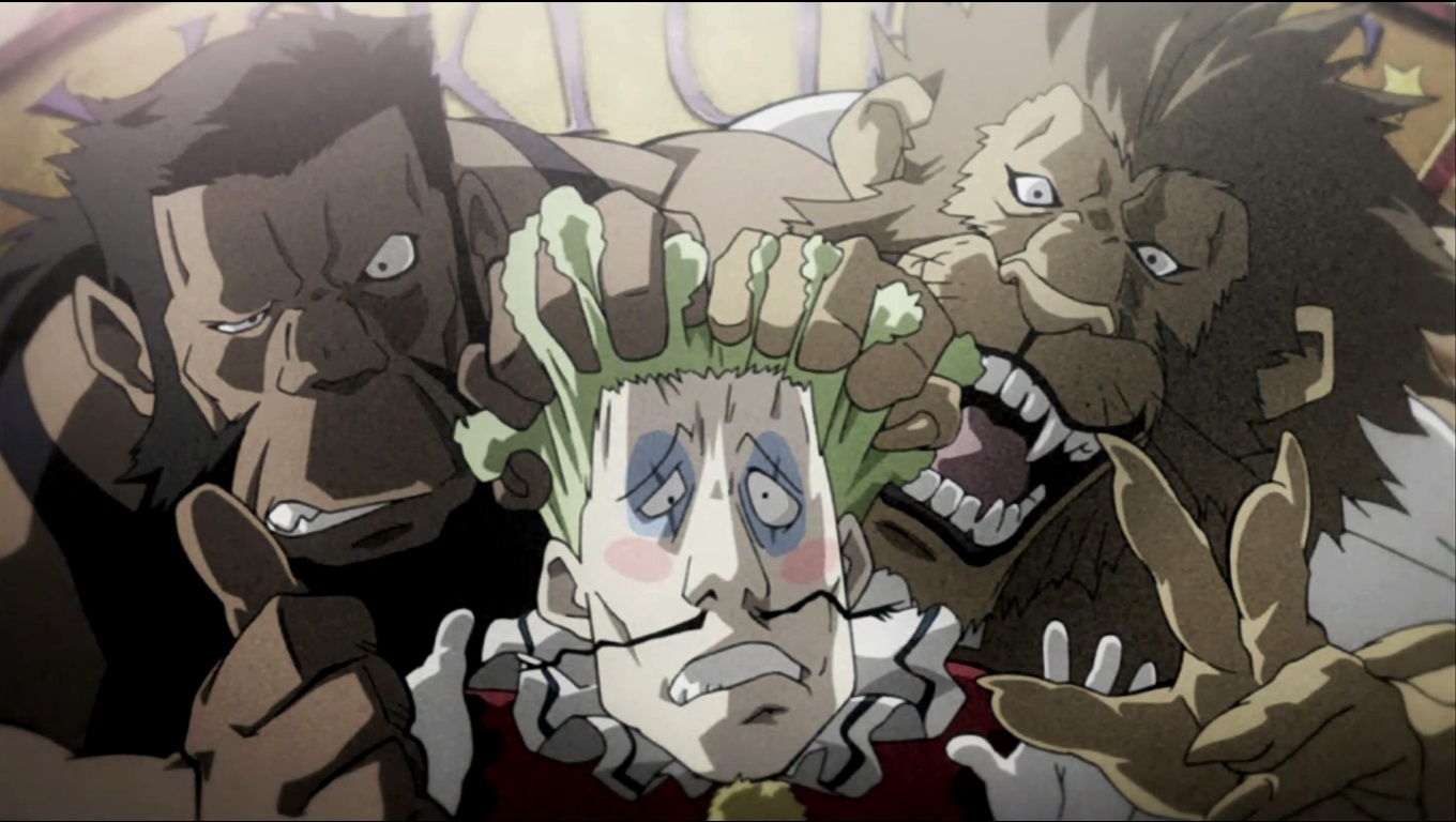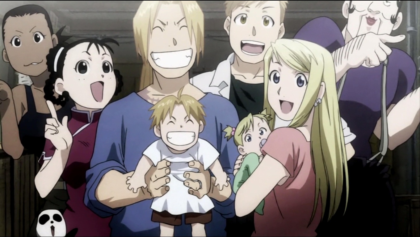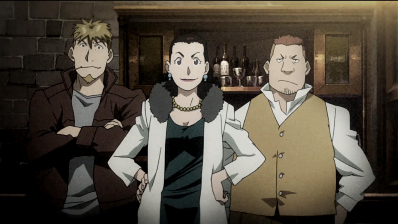 今日はアニメのほうの最終回見ていきました。原作ではエドの旅立ちで終わっていますが、アニメではその後のキャラたちが写真で少しだけ描かれていました。 スカーとマイルズの二人ですが劇中の話通りイシュヴァール復興のために赴いたようです。注目なのはスカーの髪型!髪を伸ばして後ろでくくっています。スカーは戦士だったんで動きやす髪型にしていて、戦いが終わったので伸ばしたのでしょうか?微妙に生えてるヒゲを考えると切るのが面倒だったのかな?