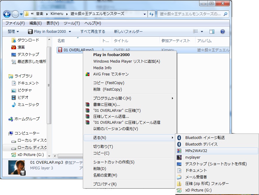 着うたにしたいファイルで左クリックでコンテキストメニューを表示させます。![鋼の錬金術師 FULLMETAL ALCHEMIST 14 [DVD]](http://ecx.images-amazon.com/images/I/51Zyl-DnPvL._SL160_.jpg)