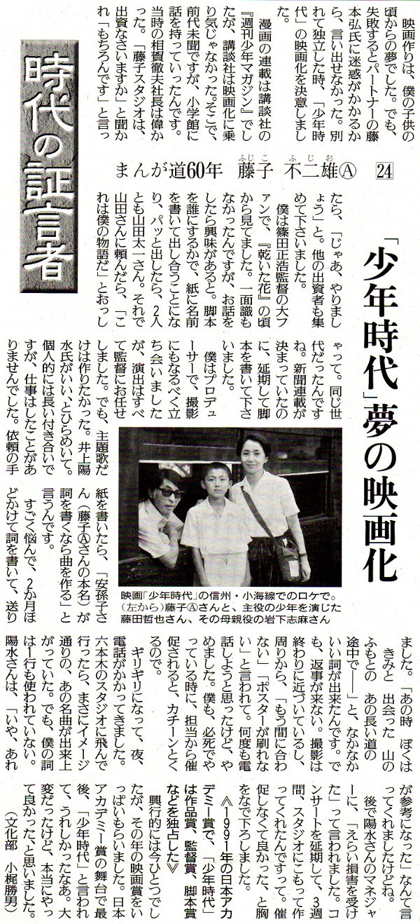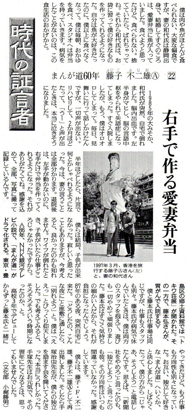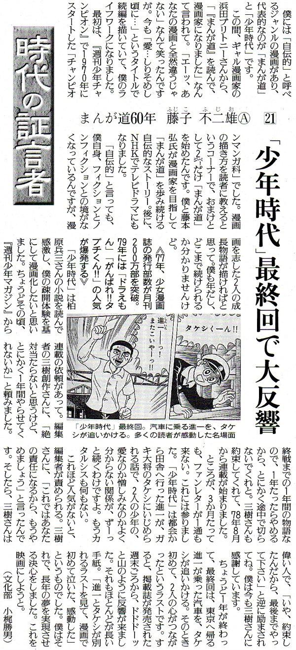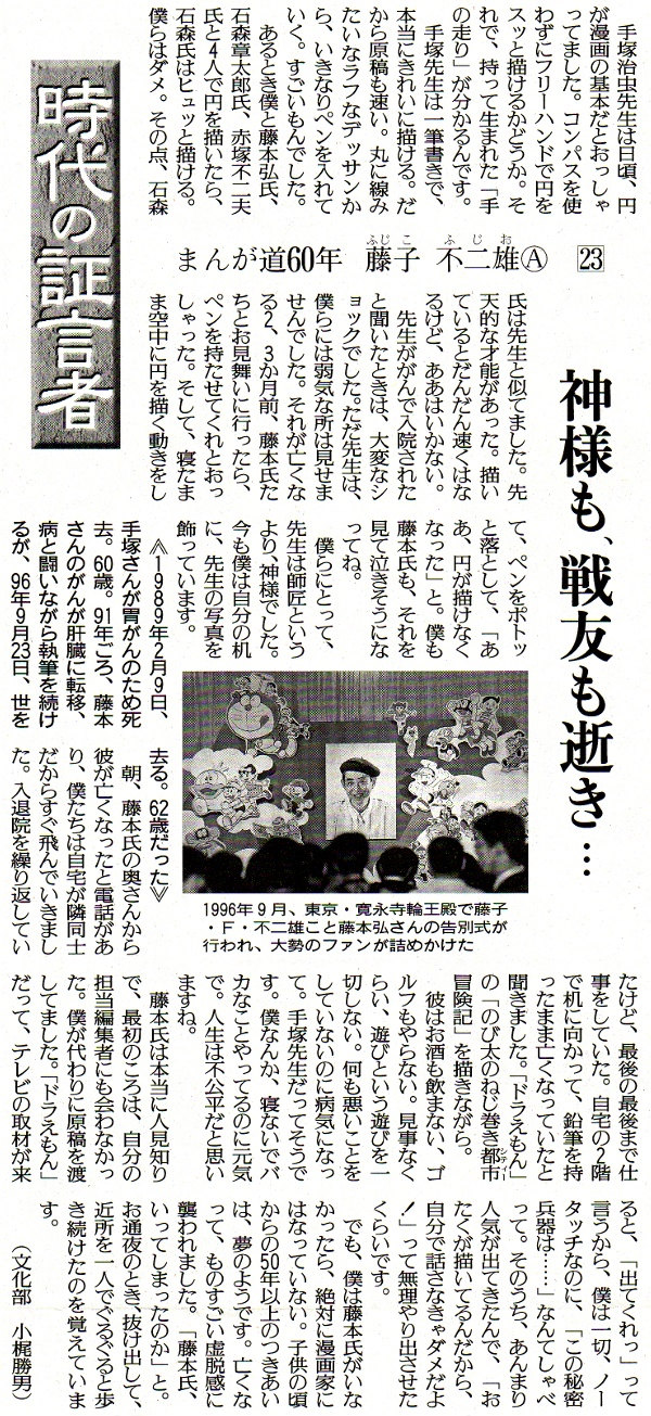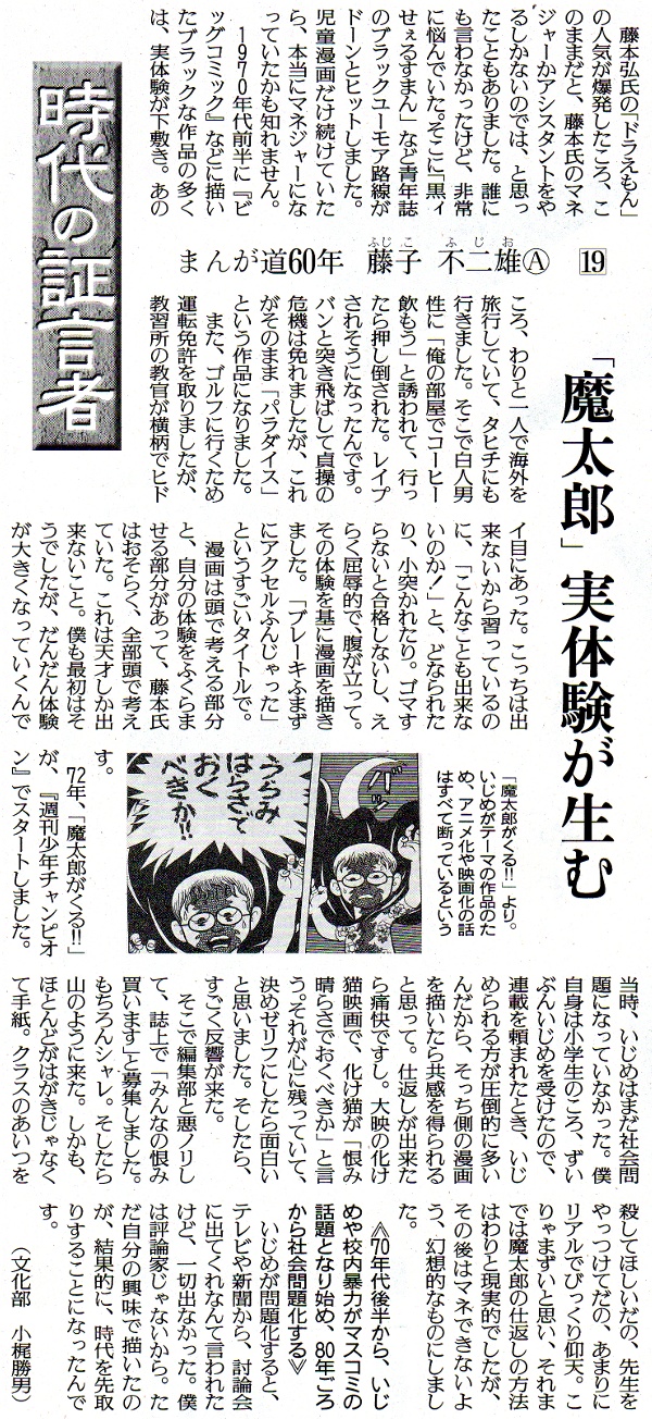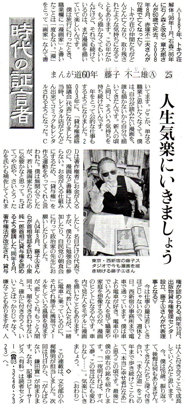 なお以前も書きましたがこれ以降は読売新聞をとっていなくて読めなかった人に向けてA先生とF先生今回はプラスしてトキワ荘のメンバーについて知ってもら いと思い載せており、悪意はないです。A先生の関係者及び読売新 聞の関係者から除去以来があれば除去いたします。