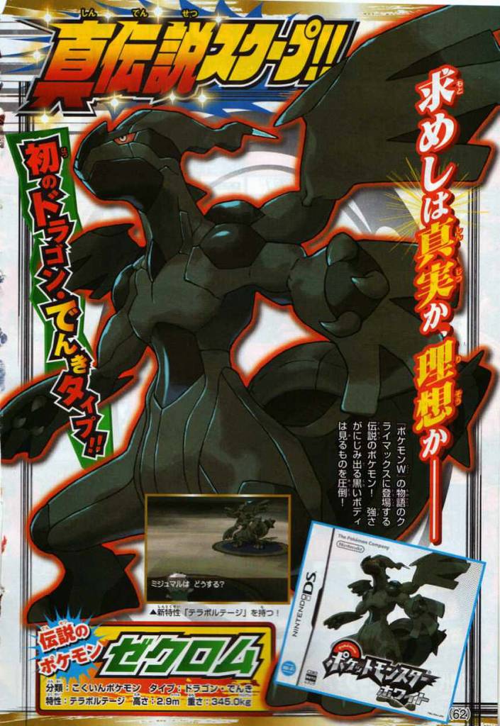 まずはゼクロムですが大方の予想はあく・ドラゴン(ひこう)だと思われていましたがドラゴン・でんきタイプだそうです。この組み合わせは初めてだそうです。かつて金銀の発売が延期されてまたされている間にすでに判明していた新ポケモンデンリュウが電気・ドラゴンではないかと言われていましたが実際は電気だけで、今回がでんき・ドラゴンの初出場です。