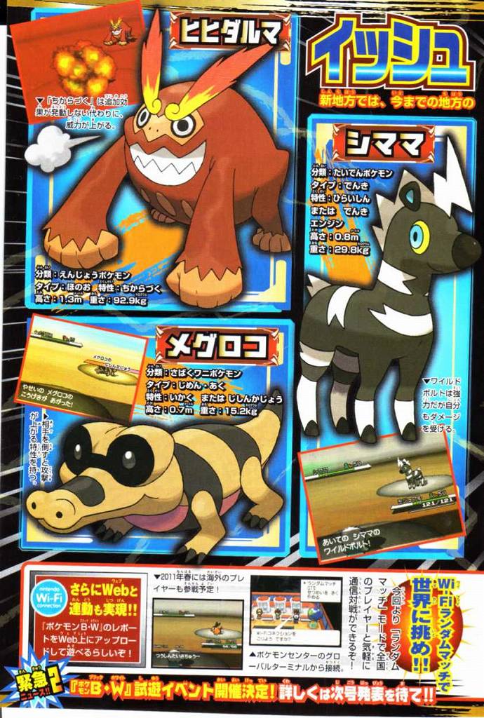 次に新ポケモンです。 どう見ても新ポケモンそうです。何かの進化前・進化後といういう感じではありません。またWi-Fiを使った大会も開かれるとか新情報が載っています。