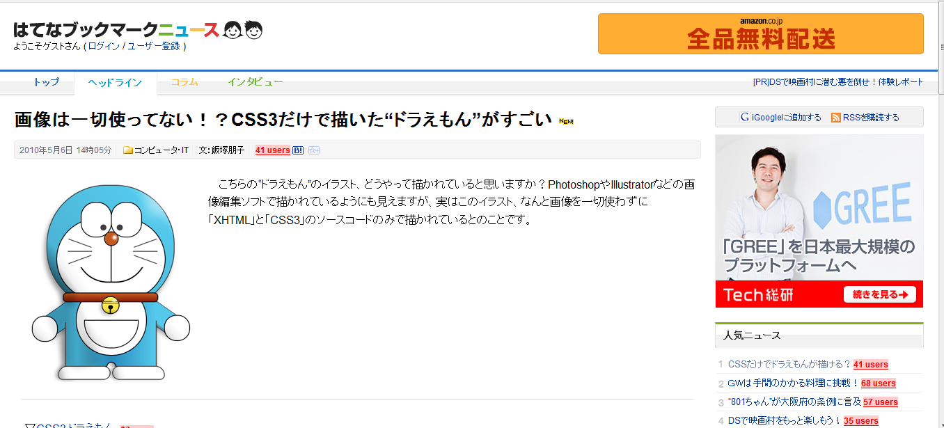 本日はてなブックマークニュースで全く画像を使っていないドラえもんが紹介されている