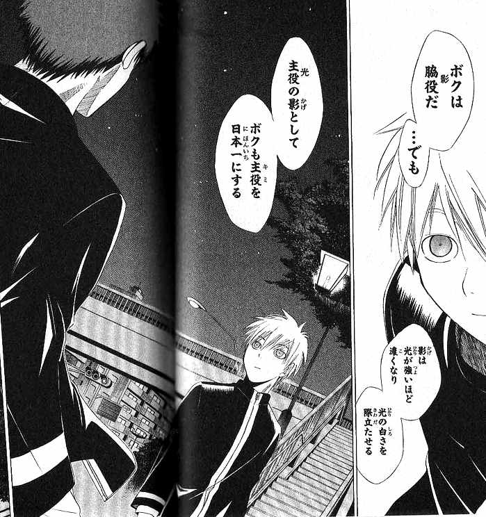 また、主人公が影が薄いキャラであるだけにもう一人の主人公である黒子の相棒は桜木花道並の明るくてバカなキャラとして描かれている。このキャラのおかげでマンガ全体は明るくなっているし、非常に見やすい物になっている気がする。