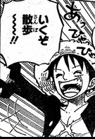突風が吹く→ルフィが助かる